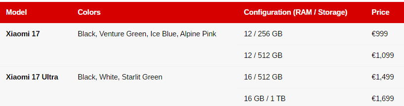 Δύο ξεχωριστές προηγούμενες διαρροές επέμεναν στον ισχυρισμό πως τόσο το Xiaomi 17 όσο και το Xiaomi 17 Ultra θα έχουν ακριβώς την ίδια τιμή με τους προκατόχους τους στην Ευρώπη και τώρα μια νέα αναφορά από τη Γαλλία έρχεται να επιβεβαιώσει αυτές τις πληροφορίες.