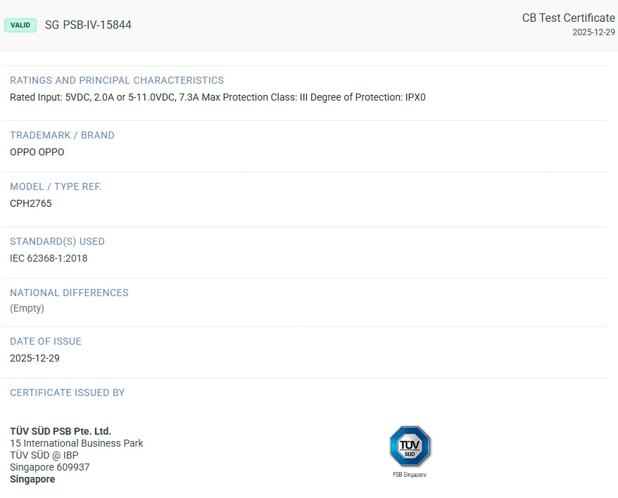 Σύμφωνα με πρόσφατες καταχωρίσεις, το Find N6 (με κωδικό μοντέλου CPH2765) έλαβε έγκριση από την πλατφόρμα πιστοποίησης TDRA των Ηνωμένων Αραβικών Εμιράτων. Η ίδια συσκευή είχε εντοπιστεί προηγουμένως και σε άλλους φορείς, όπως οι TUV και IMDA. Ενώ η καταχώριση στην IMDA επικεντρώθηκε σε θέματα συνδεσιμότητας (επιβεβαιώνοντας την υποστήριξη eSIM), τα στοιχεία από την TUV αποκαλύπτουν πως το τηλέφωνο θα υποστηρίζει ενσύρματη ταχεία φόρτιση 80W. Με βάση αυτές τις κινήσεις, η συσκευή αναμένεται να κάνει το ντεμπούτο της εντός του πρώτου τριμήνου του 2026.