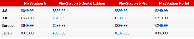 Οι νέες τιμές για συσκευές PlayStation σε διάφορες περιοχές είναι οι εξής: