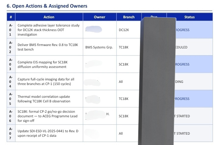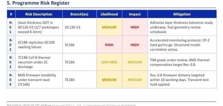 - SDI-TC18K-SiC (18.000mAh): Εδώ η πολυπλοκότητα αυξάνεται με τριπλή στοίβαξη κυψελών. Το κύριο εμπόδιο αποδείχθηκαν τα θερμικά ενδιάμεσα στρώματα (thermal interface layers), τα οποία αύξησαν το πάχος στα 12,8mm, ξεπερνώντας τον αρχικό σχεδιασμό των 12,3mm.